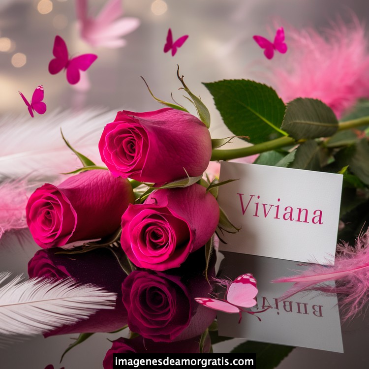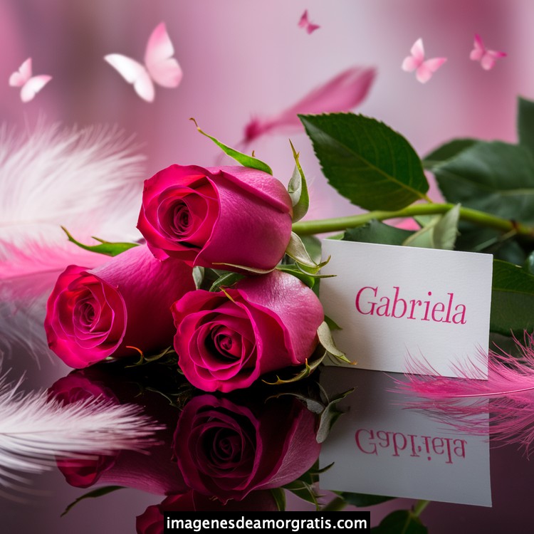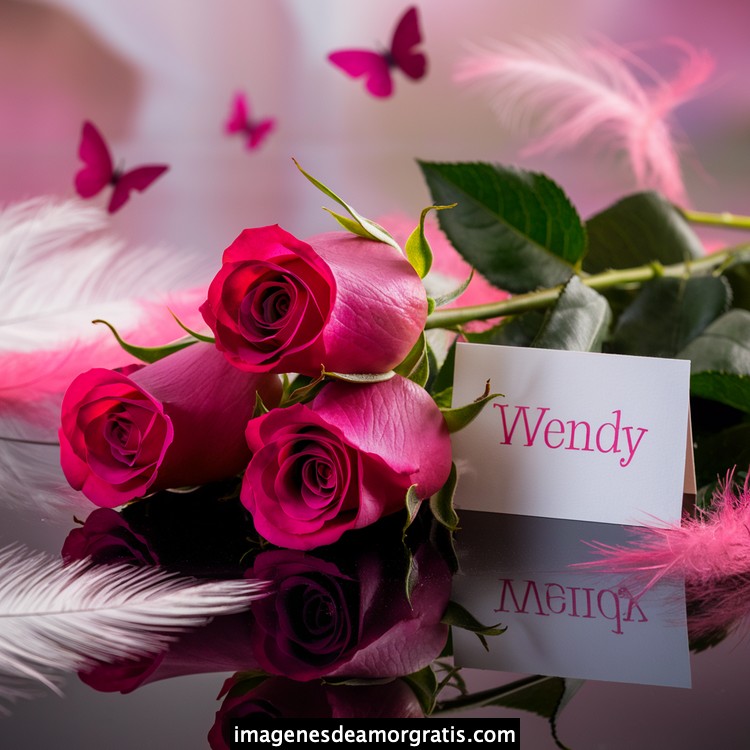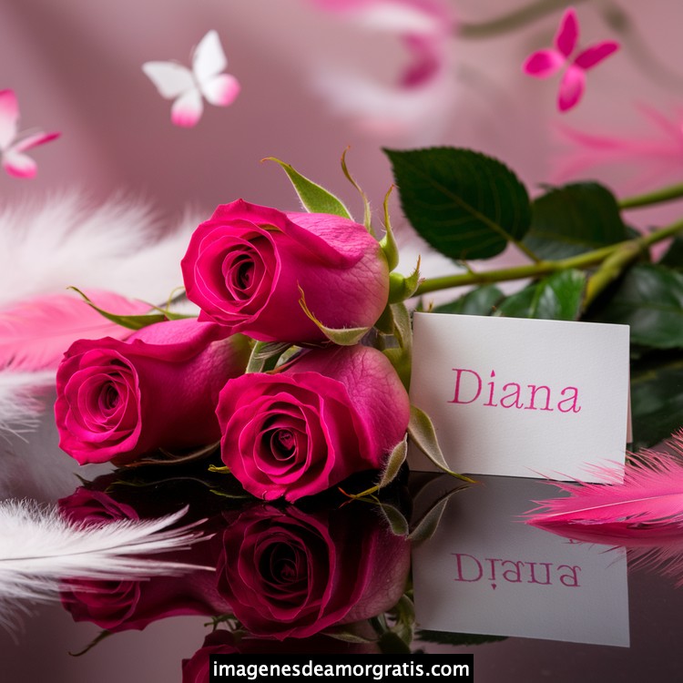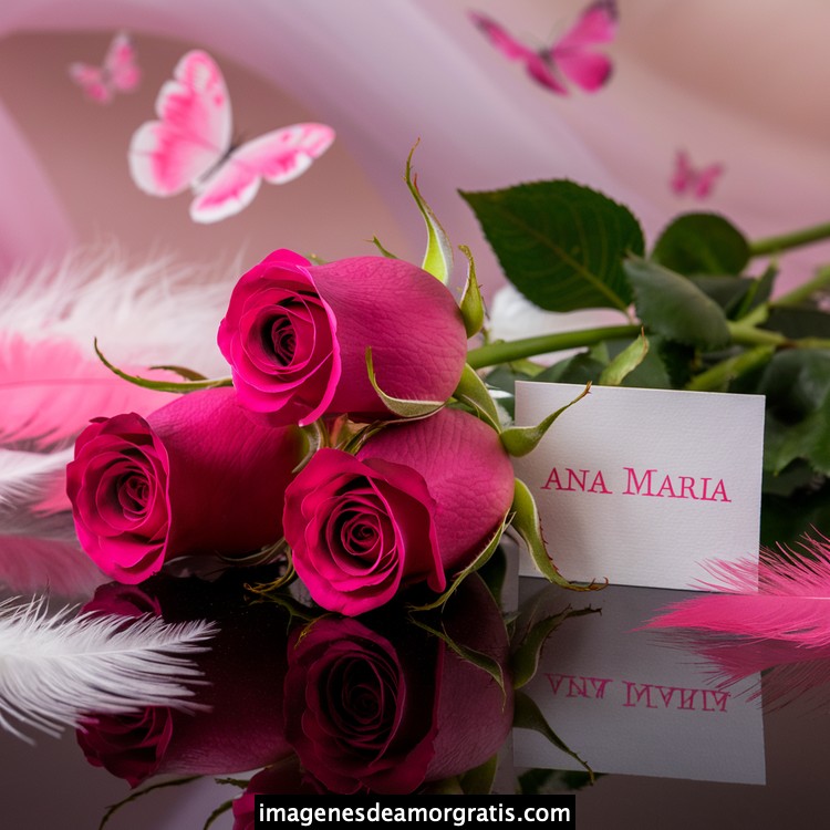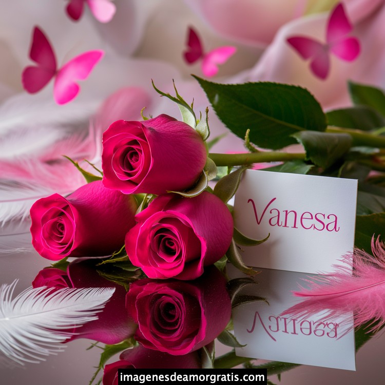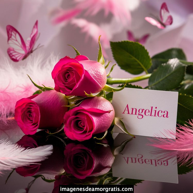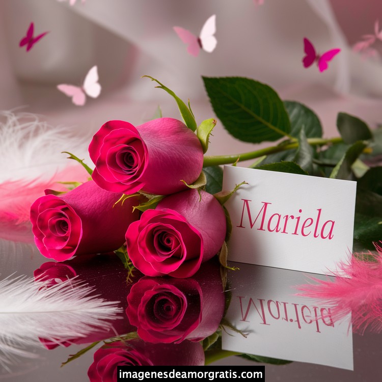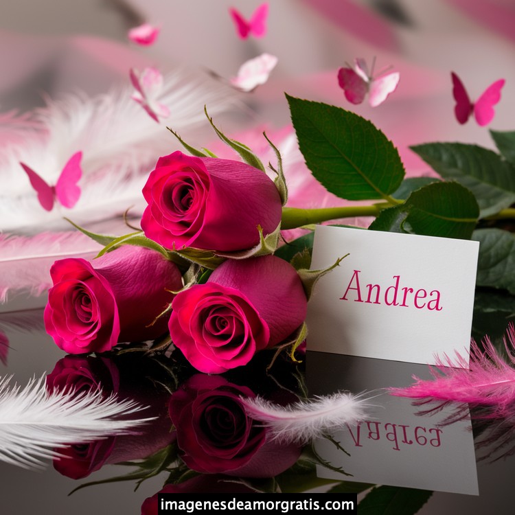 Les traemos este bonito diseño de imágenes con nombres muy bonitos y románticos. El mismo tiene como protagonista principal un arreglo de rosas, adornado con plumas y mariposas. Hacia el costado una tarjeta con el nombre a quien está dedicado este majestuoso e increíble ramo de rosas. Es un diseño romántico, tan lindo y delicado que llegará a conmover tu corazón. Es ideal para regalar a la mujer que amas o a mujeres importantes para ti en tu vida.