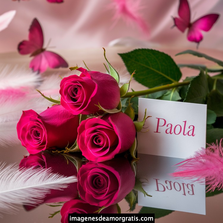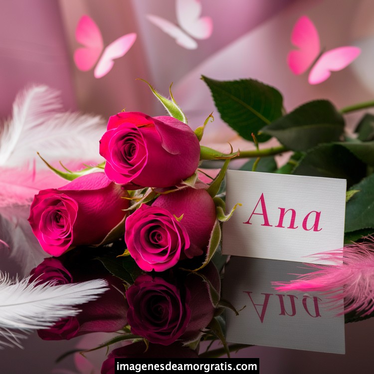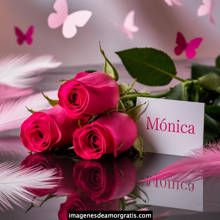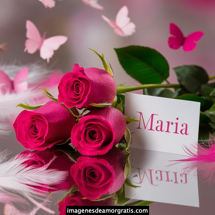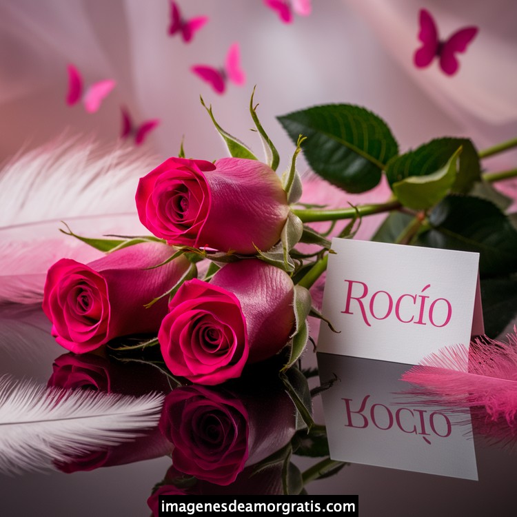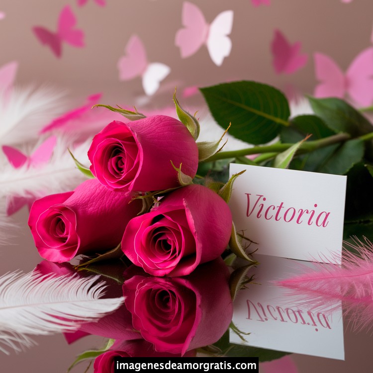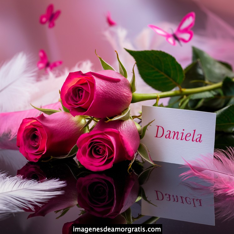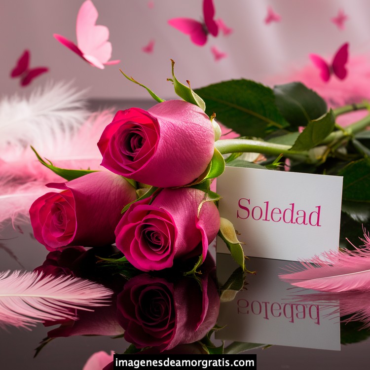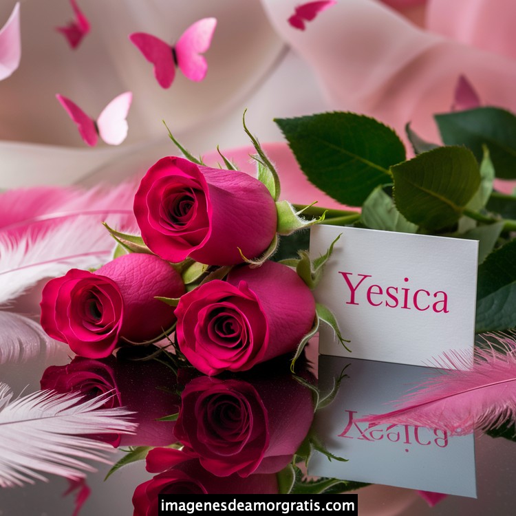 Les traemos este bonito diseño de imágenes con nombres muy bonitos y románticos. El mismo tiene como protagonista principal un arreglo de rosas, adornado con plumas y mariposas. Hacia el costado una tarjeta con el nombre a quien está dedicado este majestuoso e increíble ramo de rosas. Es un diseño romántico, tan lindo y delicado que llegará a conmover tu corazón. Es ideal para regalar a la mujer que amas o a mujeres importantes para ti en tu vida.