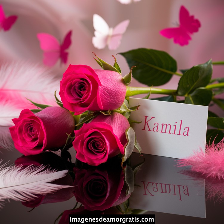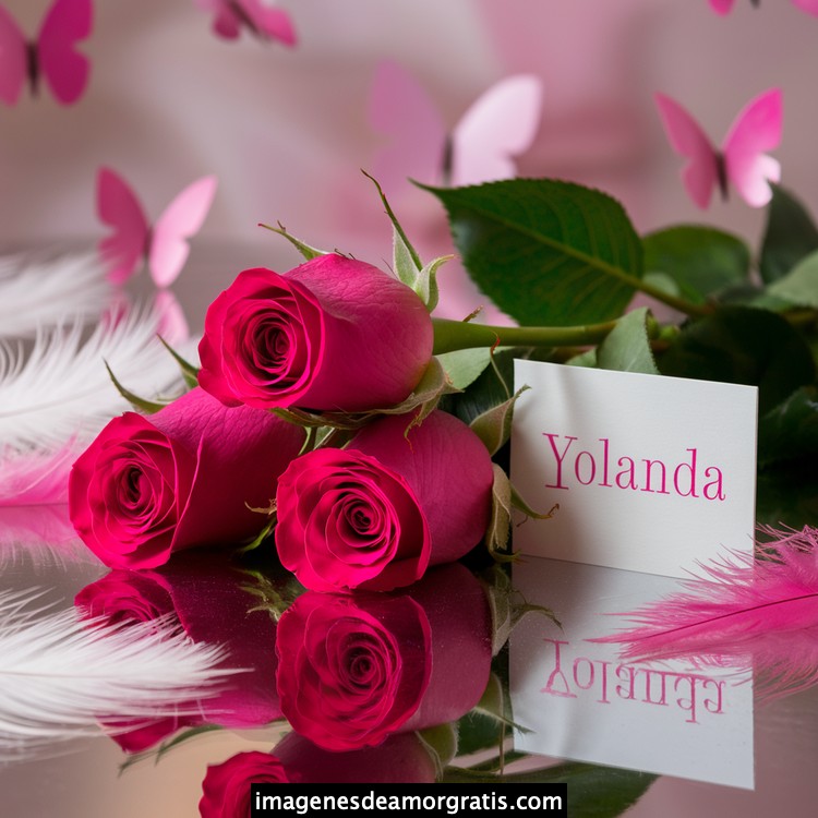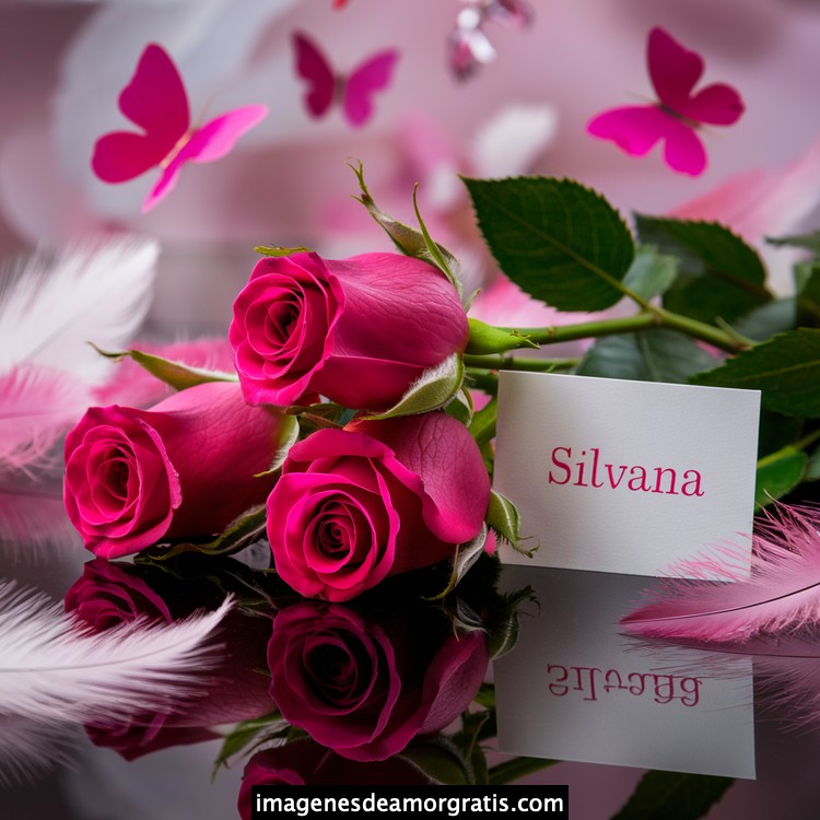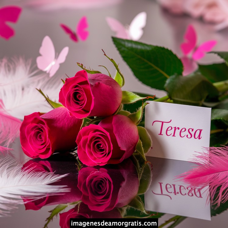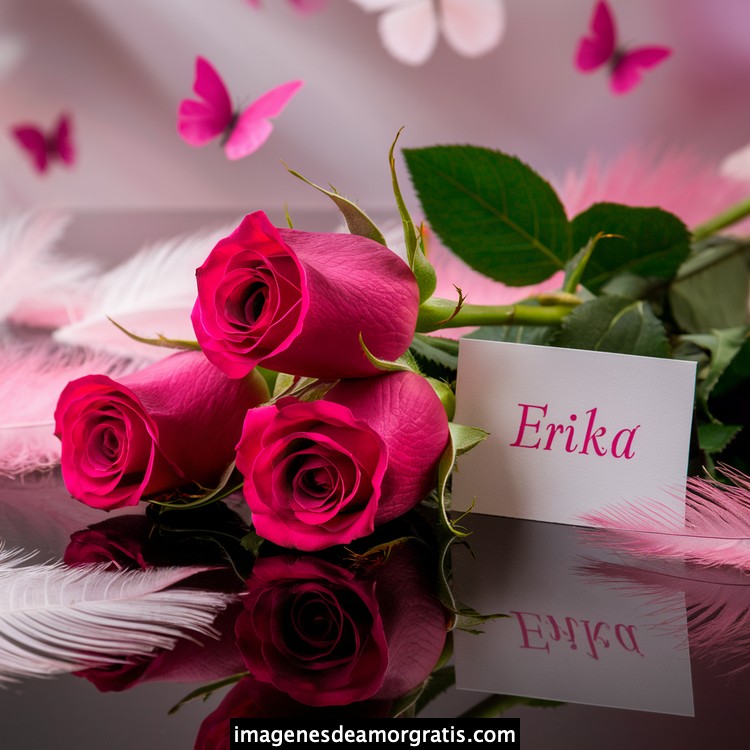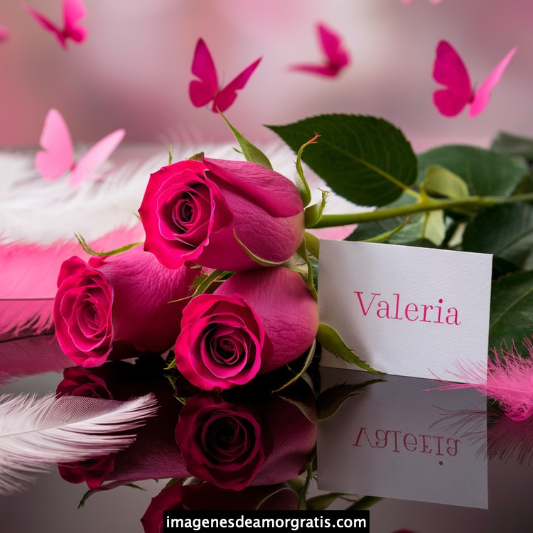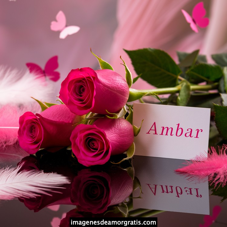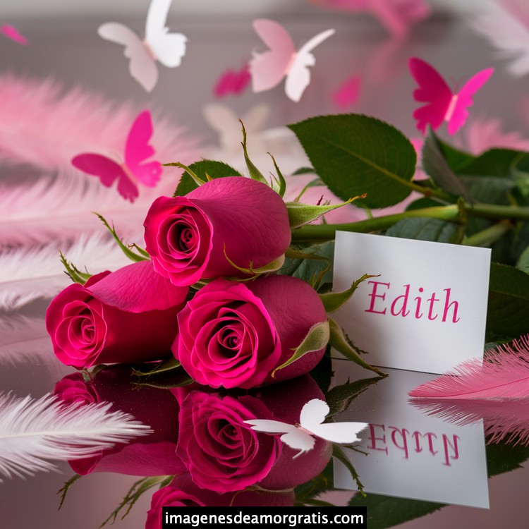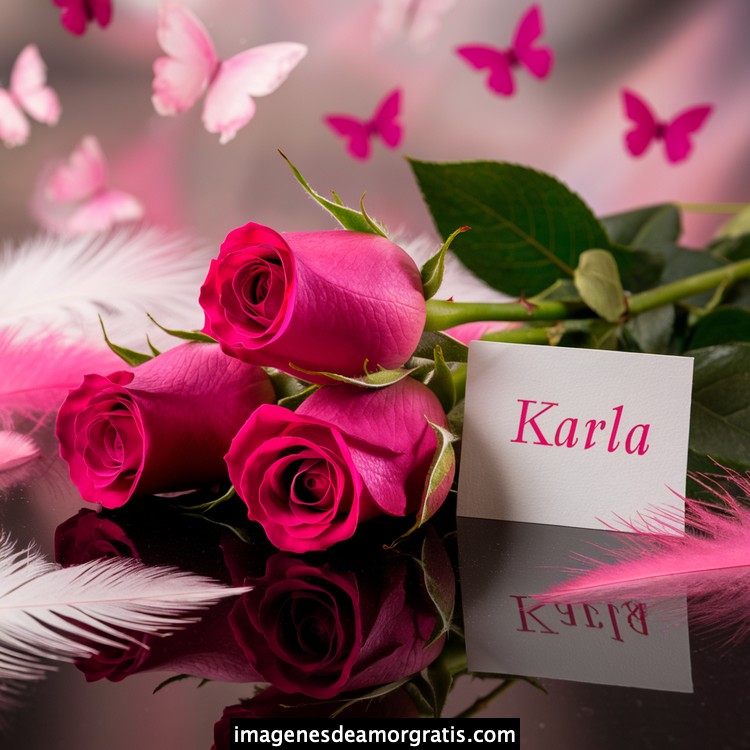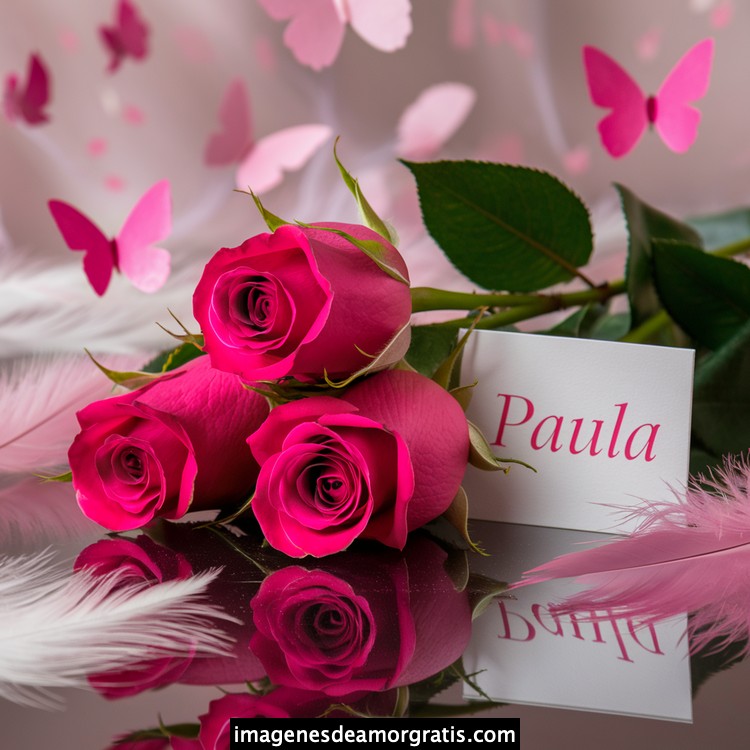 Les traemos este bonito diseño de imágenes con nombres muy bonitos y románticos. El mismo tiene como protagonista principal un arreglo de rosas, adornado con plumas y mariposas. Hacia el costado una tarjeta con el nombre a quien está dedicado este majestuoso e increíble ramo de rosas. Es un diseño romántico, tan lindo y delicado que llegará a conmover tu corazón. Es ideal para regalar a la mujer que amas o a mujeres importantes para ti en tu vida.