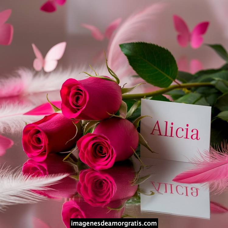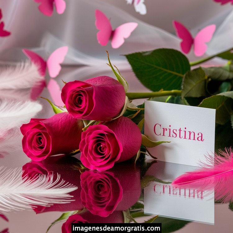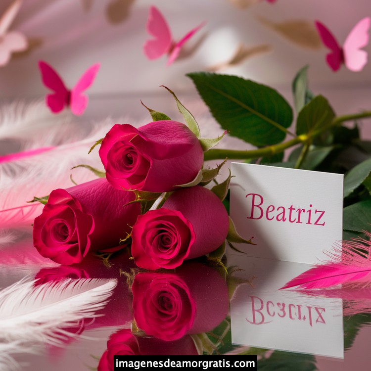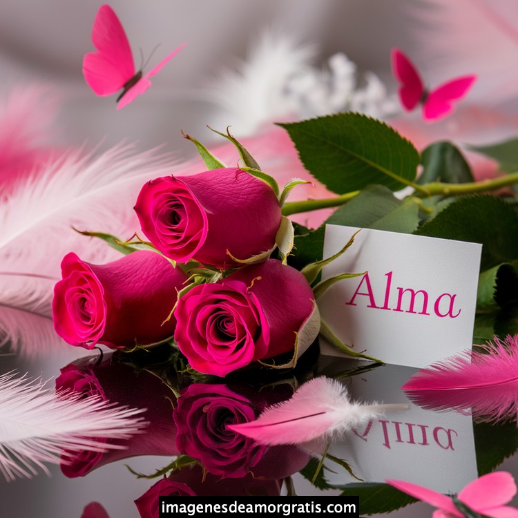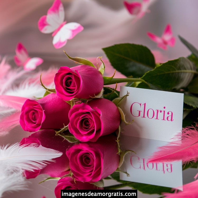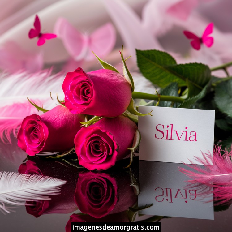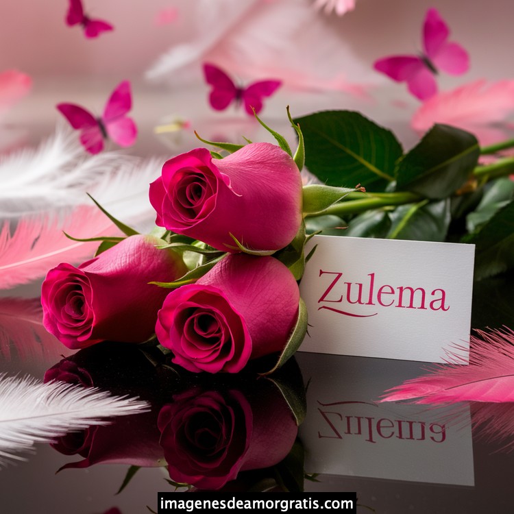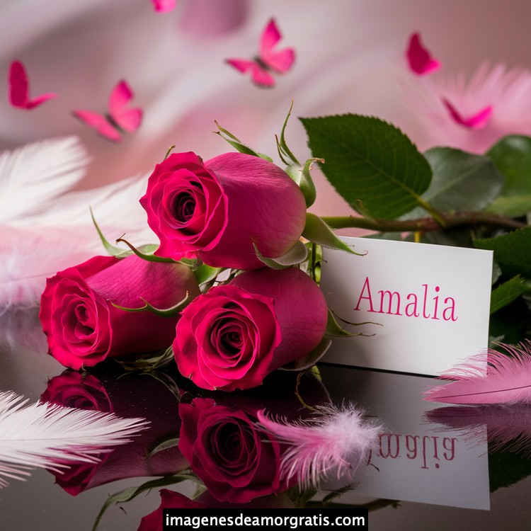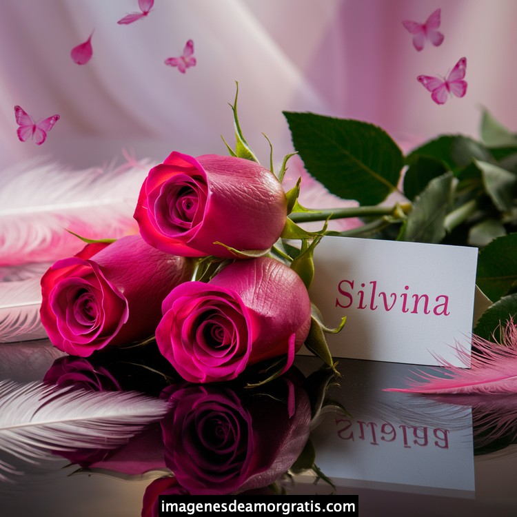 Les traemos este bonito diseño de imágenes con nombres muy bonitos y románticos. El mismo tiene como protagonista principal un arreglo de rosas, adornado con plumas y mariposas. Hacia el costado una tarjeta con el nombre a quien está dedicado este majestuoso e increíble ramo de rosas. Es un diseño romántico, tan lindo y delicado que llegará a conmover tu corazón. Es ideal para regalar a la mujer que amas o a mujeres importantes para ti en tu vida.