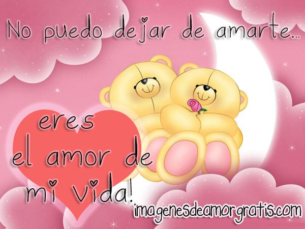 ¡Que lindo es el amor! nos encanta... y amamos hacer imágenes para que le puedan regalar a la persona que aman. En esta linda imagen de dos ositos sentados en una hermosa luna, hay una frase que resume todo lo que se puede sentir por una persona.."No puedo dejar de amarte... eres el amor de mi vida!".
